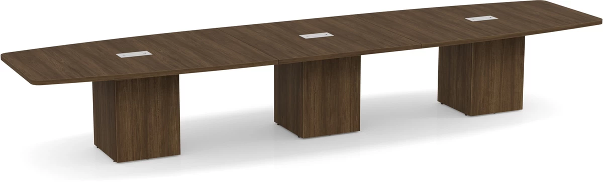 The Classic Boat-Shape Conference Table with Cube Base features a unique shape that gives all participants a clear line of sight during meetings. The cube base adds a modern touch, while discreetly organizing power and data cables to maintain a tidy boardroom setting.