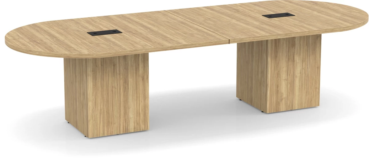 The Classic Racetrack Conference Table with Cube Base brings an elegant style to your boardroom. This shape allows you to spaciously seat attendees without limiting leg and elbow room. Create a clutter-free environment with the cube base that lets you conceal cables and cords inside.