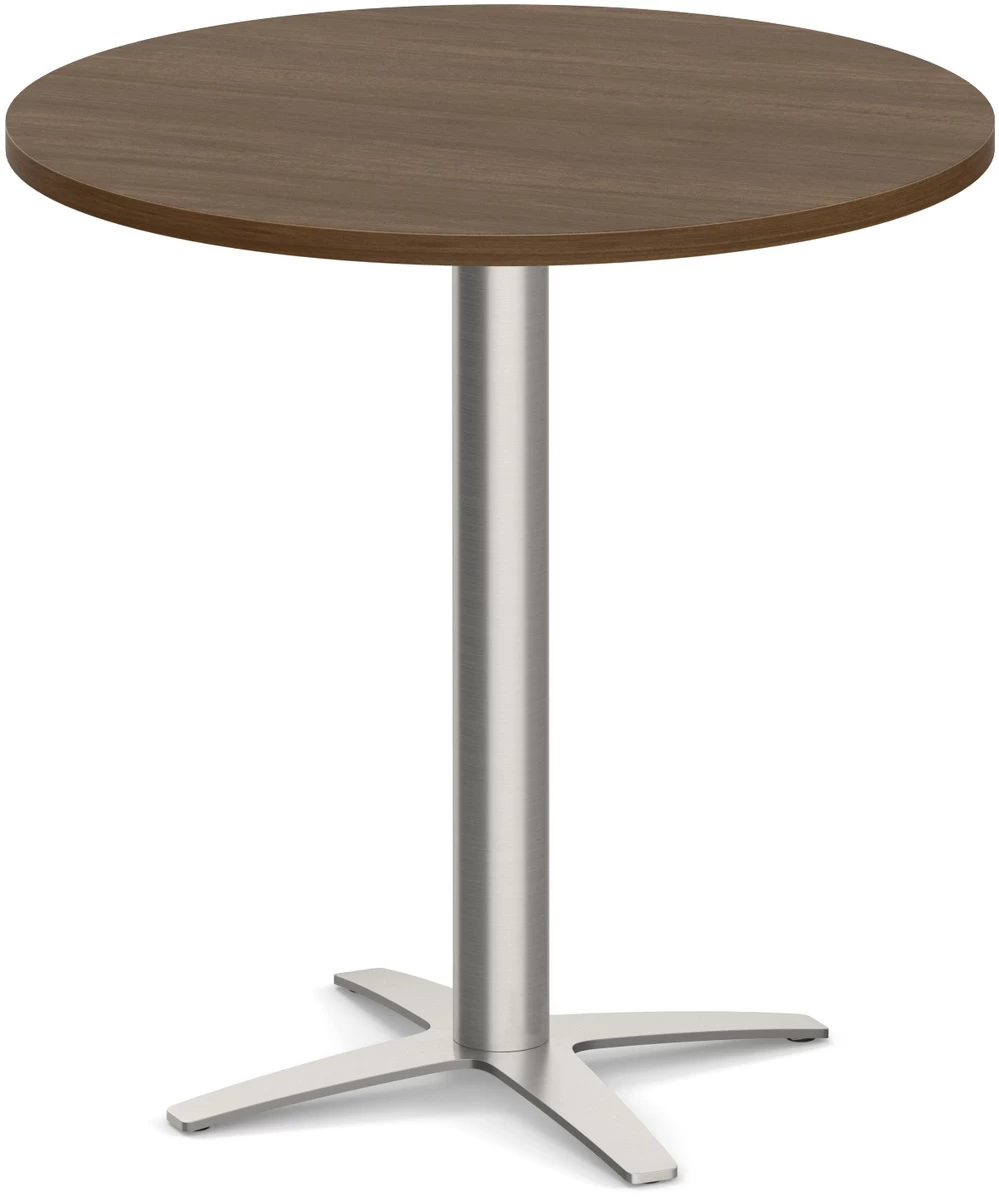 Classic Round Meeting Table 30″ With Cross Brushed Metal Base – Modern Walnut