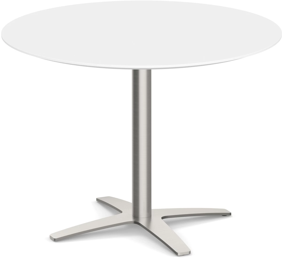 Classic Round Meeting Table 42″ With Beveled-Edge Top And Cross Brushed Metal Base – White
