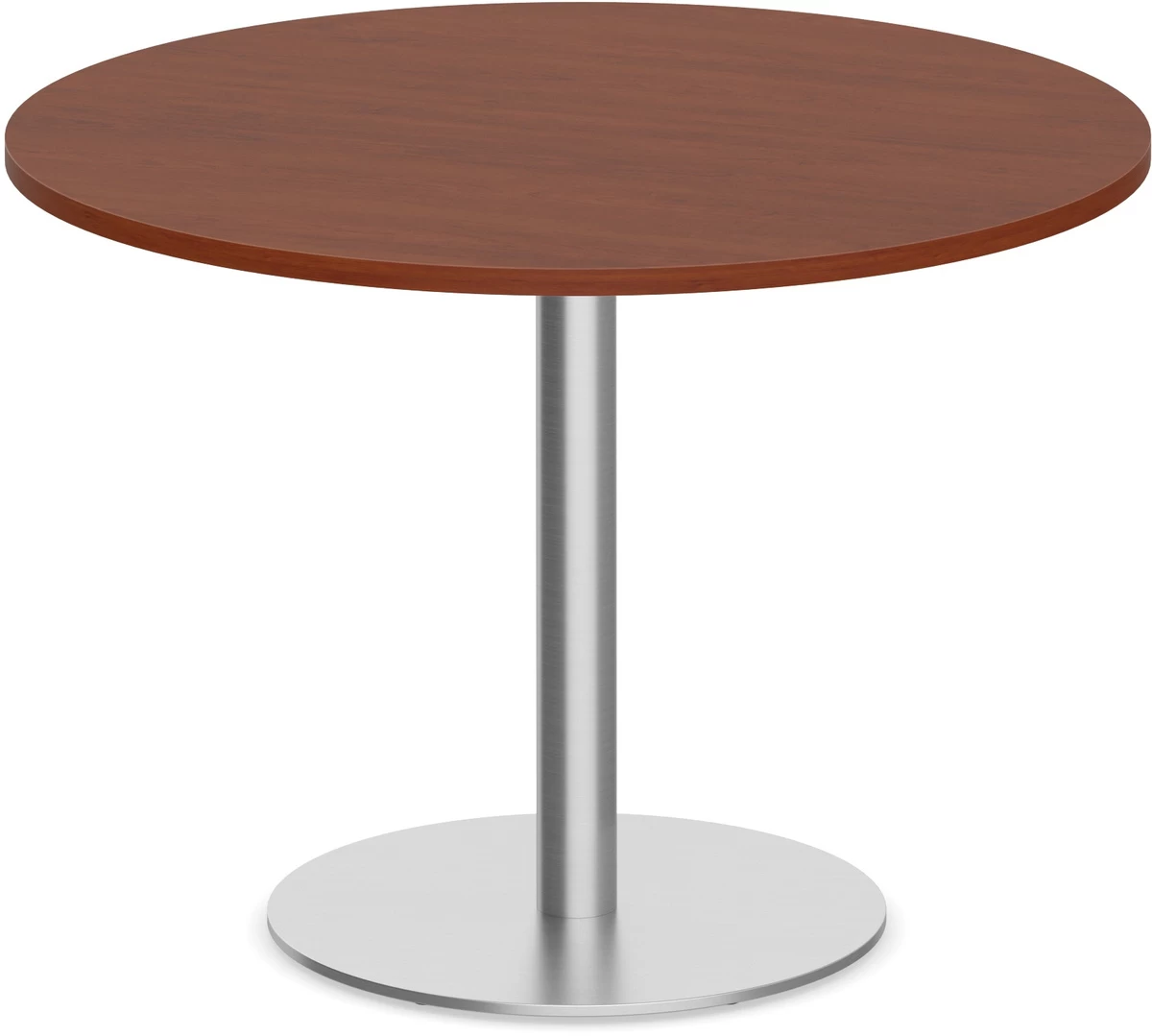 Classic Round Meeting Table 47″ With Square-Edge Top And Round Brushed Metal Base – Cherry