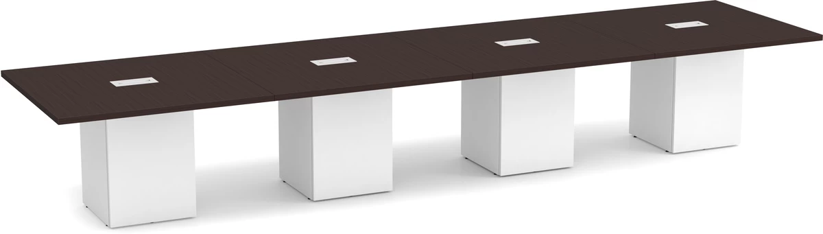 Classic Square-Edge Conference Table 16 Ft With Cube Base – Espresso With White Base