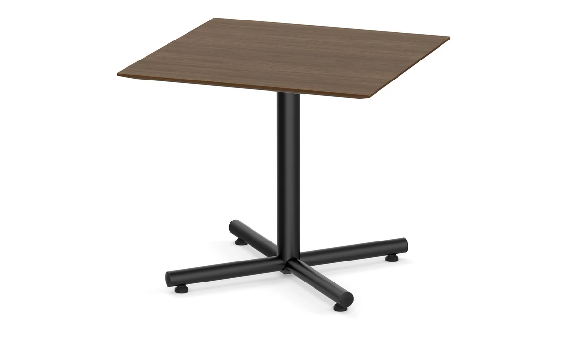 Classic Square Meeting Table 36″ With Beveled-Edge Top And Black Metal Cross Base – Modern Walnut