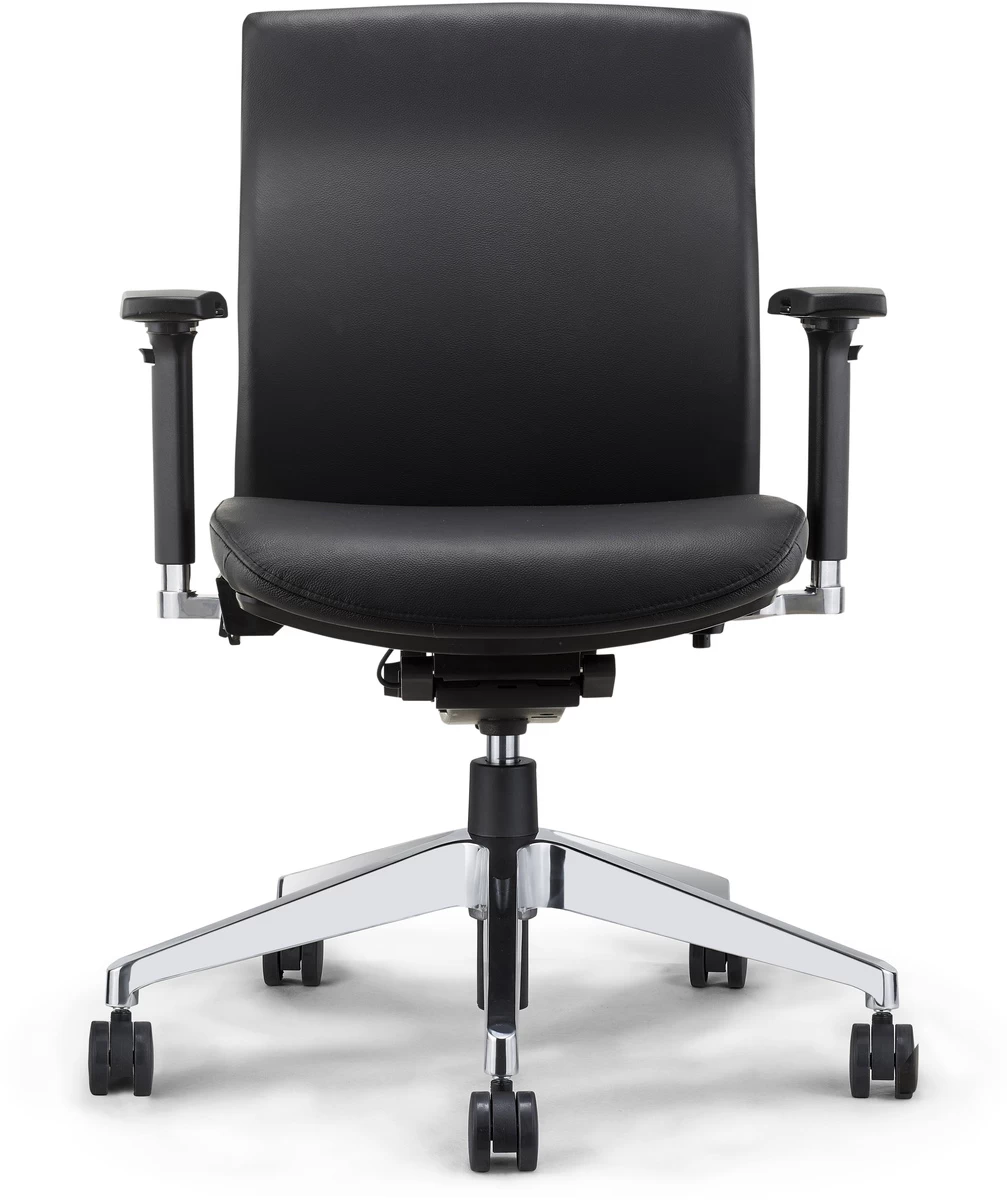 The Elan Mid Back Chair is minimal in design and allows for a simple but powerful look. Its 360° swivel and adjustable height, arms, seat, and tilt settings prioritize comfort and is great for boardrooms and touchdown workstations.