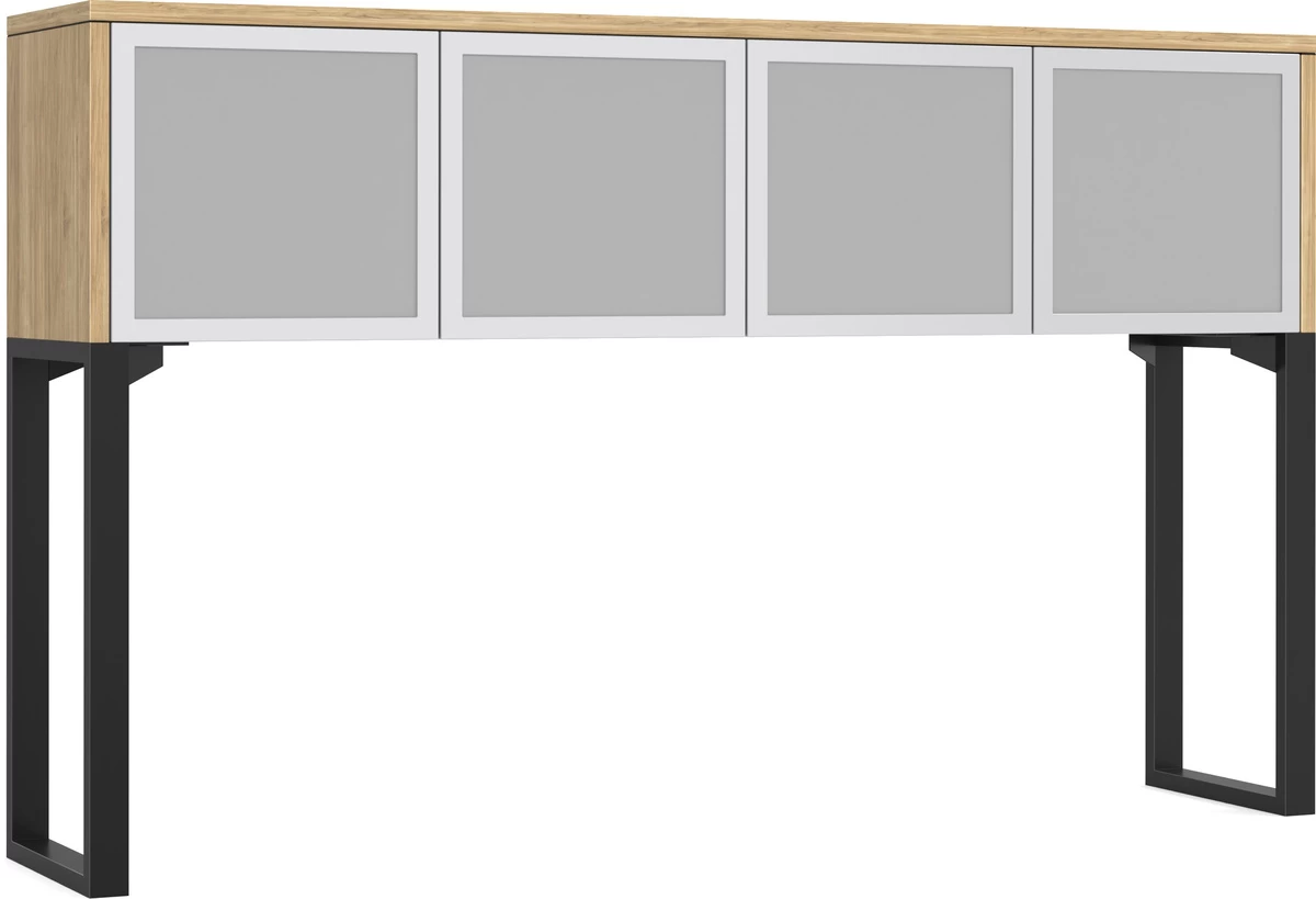 Elements Hutch 71″ With 4 Glass Doors And 27″ Riser – Aspen With Black Riser
