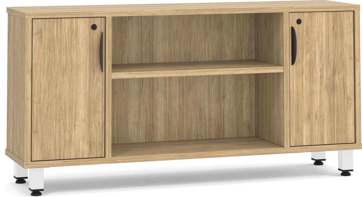 Encore Narrow Storage Credenza With Metal Legs – Aspen With White Legs