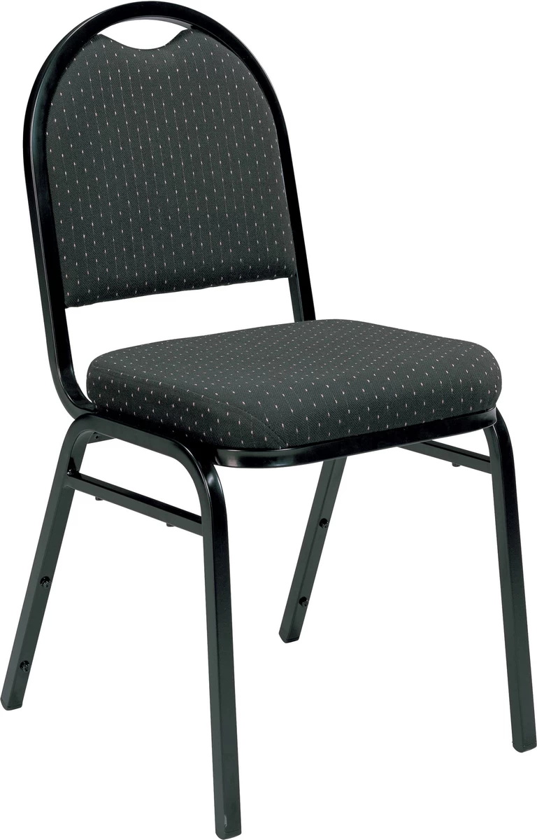 Simply designed with a black metal frame and patterned fabric, the Fabric Stacking Chair fulfils seating needs with strength and durability. Featuring extra thick foam padding in the seats and a cushioned back, this chair pairs comfort with function.