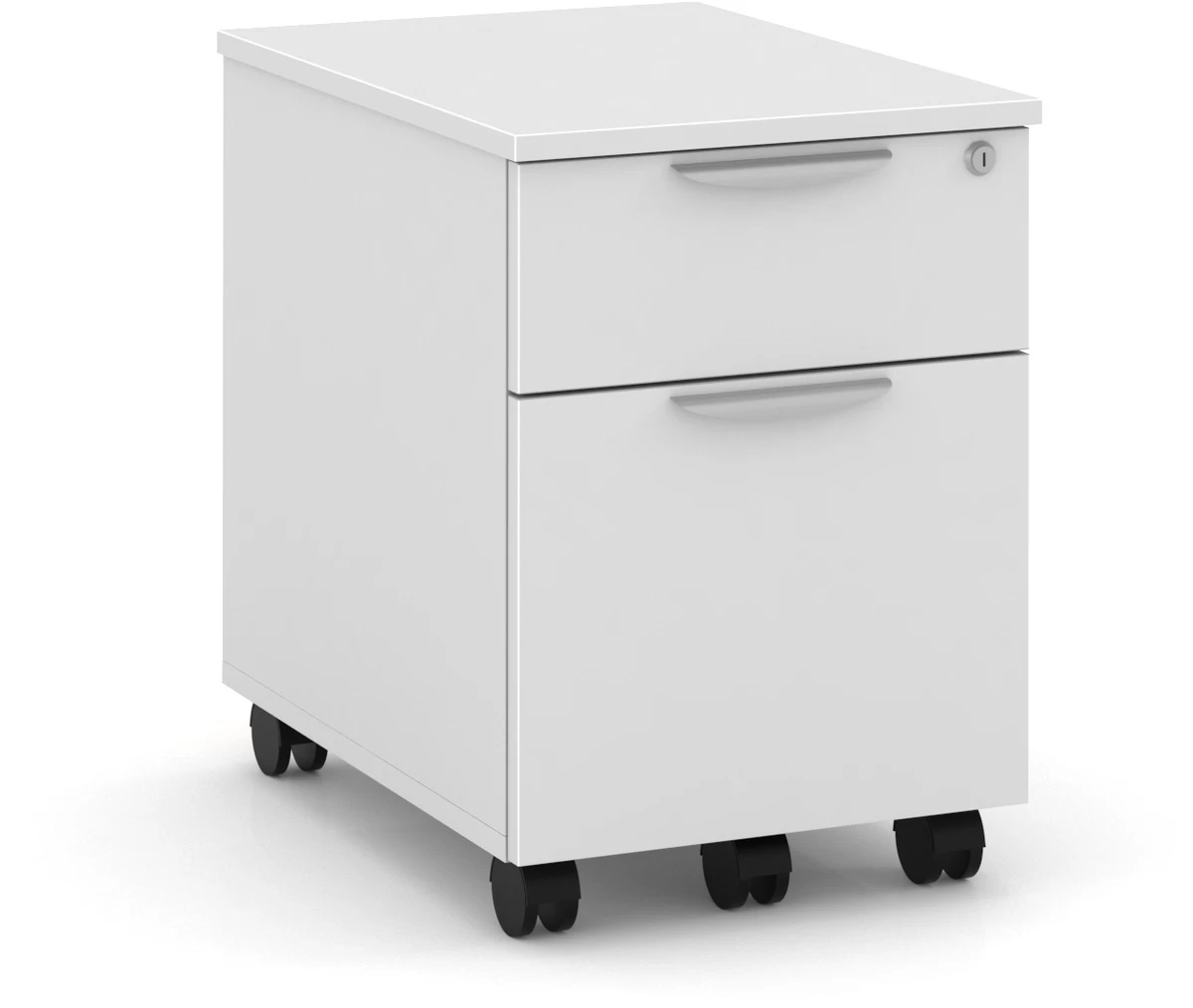 Perfect for under the desk or beside it, the Locking Mobile Box/File Pedestal keeps your workstation clean and organized. Quickly grab stationery and supplies from the top drawer, and store legal or letter hanging files in the bottom drawer.
