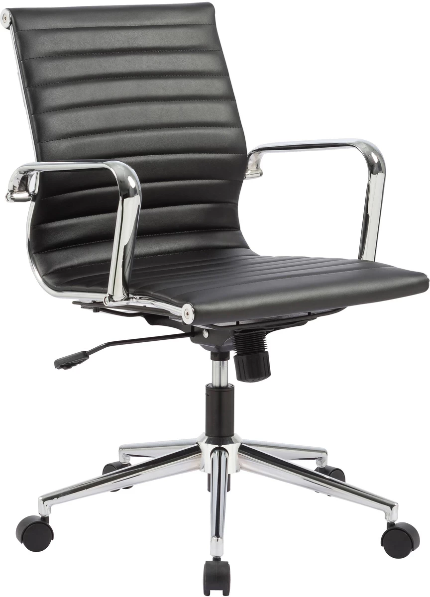 The Nova Mid Back Chair is a low-profile addition to boardrooms and private offices. Its modern and sleek design features a chrome base combined with leather to give a contemporary feel to any room.