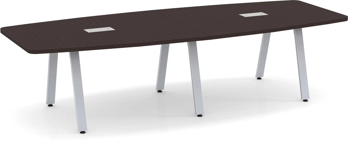 Signature Boat-Shape Conference Table 10 Ft – Espresso With Silver Metal Legs