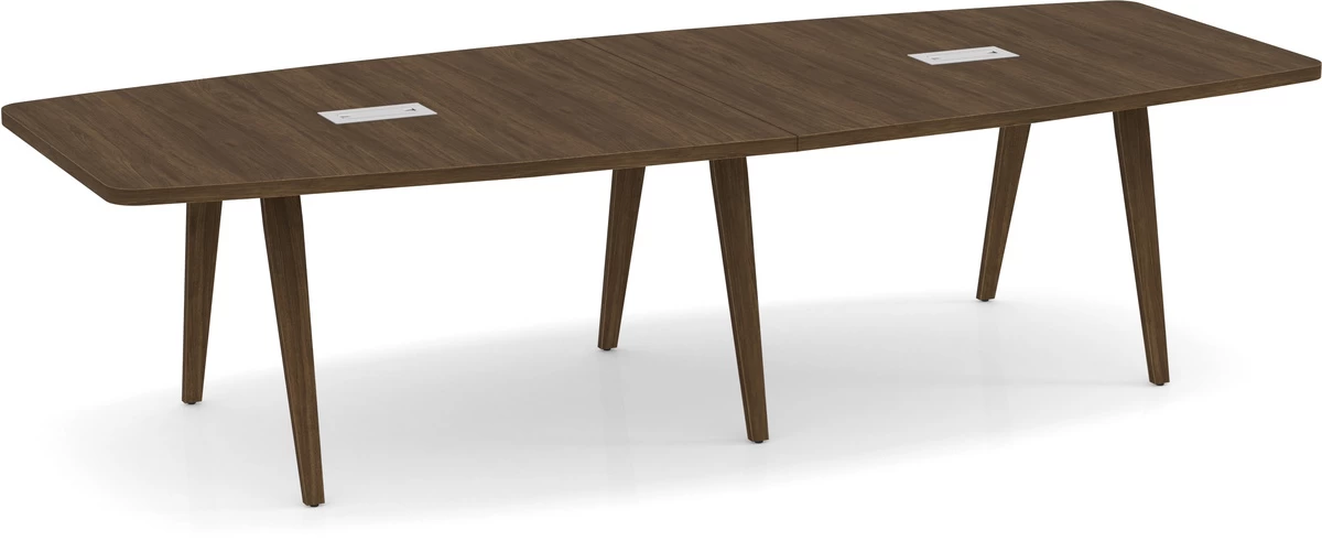 Signature Boat-Shape Conference Table 10 Ft – Modern Walnut And Silver Hardware