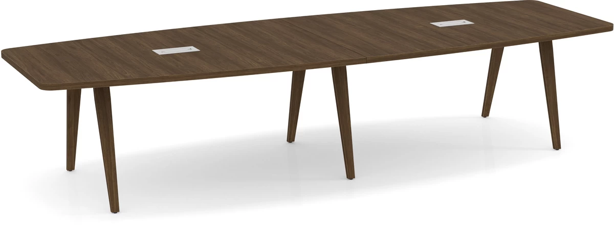 The Signature Boat-Shape Conference Table features a mid-century design that lets you meet and collaborate in style. With its boat-like shape that allows meeting goers to see each other no matter where they sit, this conference table can make meetings a breeze.