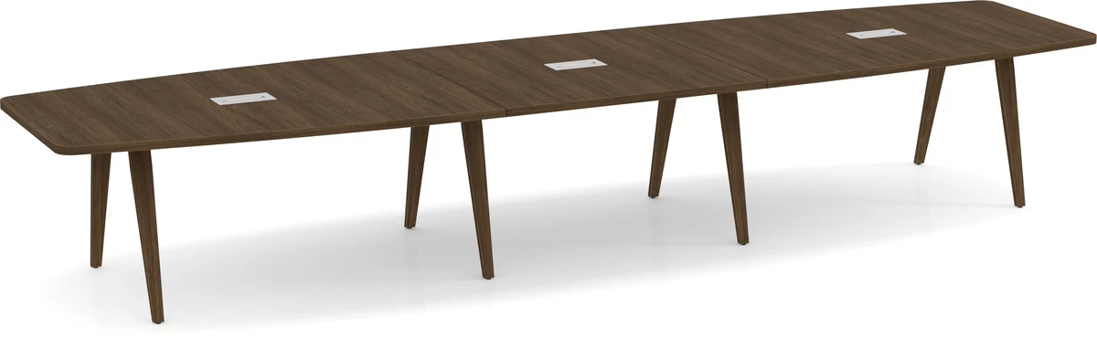 Signature Boat-Shape Conference Table 16 Ft – Modern Walnut And Silver Hardware