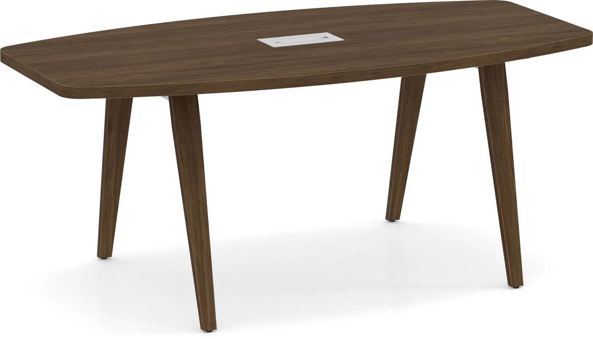 Signature Boat-Shape Conference Table 8 Ft – Modern Walnut With Black Hardware